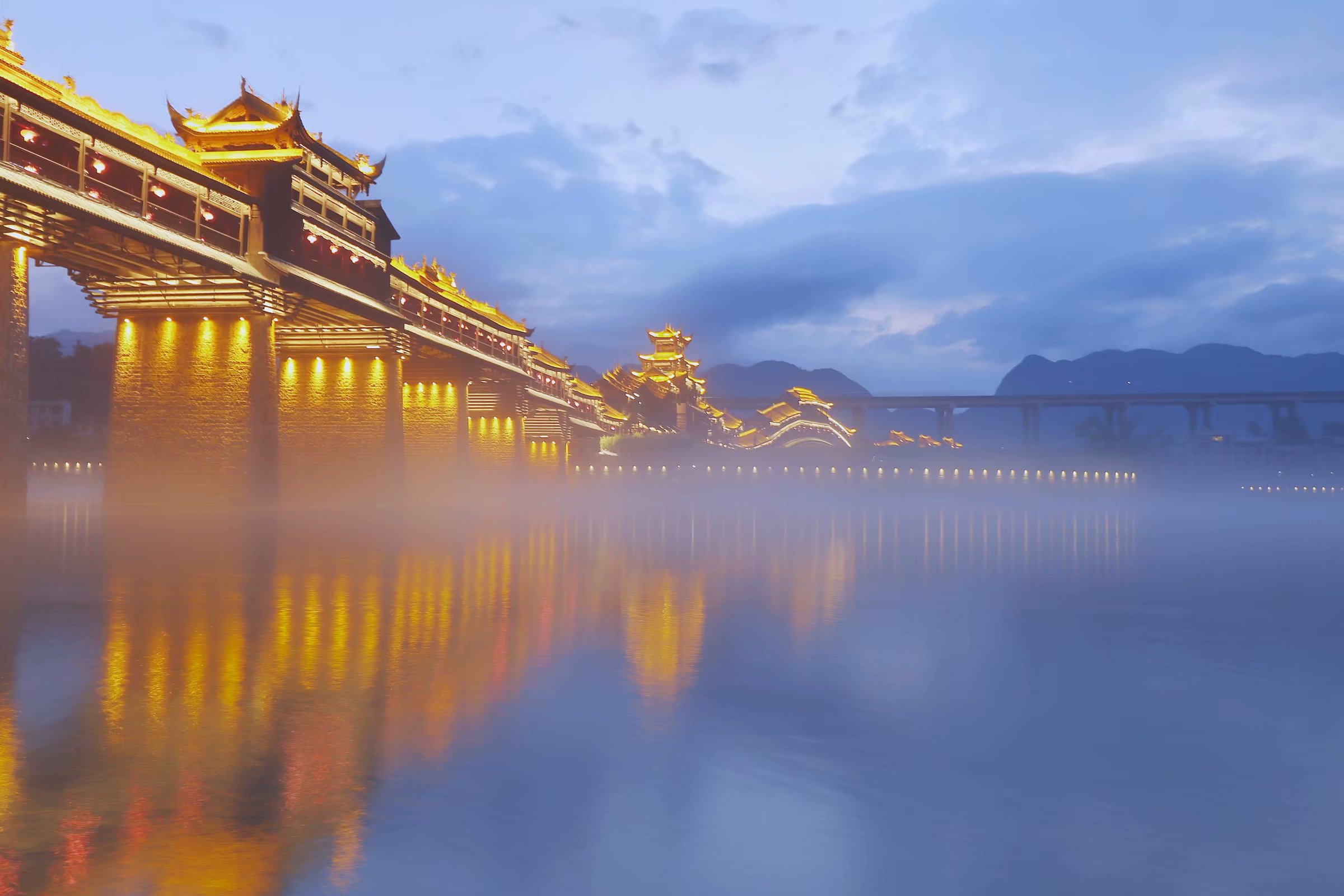 整座濯水風雨廊橋,不僅為世界第一長度的廊橋,在形態上、結構上、工藝上實現了傳統與現代的結合,中式與歐式的結合,東方建筑美學與西方建筑美學的結合,更是傳統木質廊橋與使用膠合木和鋼架相結合的全新的結構方式,實現了建筑上新的探索和嘗試。