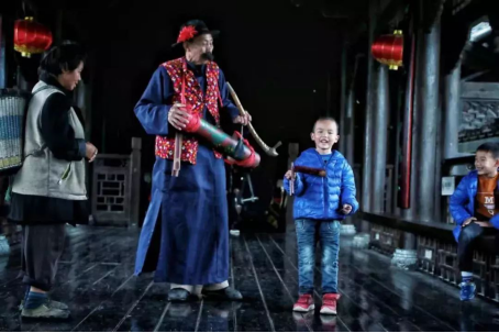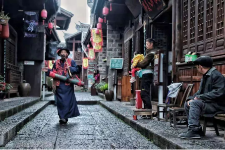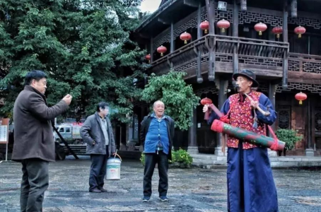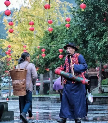 余老人是古鎮(zhèn)里唯一會打漁鼓筒的老人,在鎮(zhèn)上備受尊敬,每當有貴客來臨或是喜事來臨時,便能在鎮(zhèn)上瞧見老人手持漁鼓,邊說邊唱的場景。